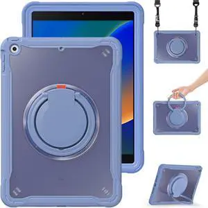 SENLAN Case for iPad 10.2 inch 2022/2021/2020, iPad 9th Gen 8th Gen 7th Gen Case 360deg Ring Stand with Shoulder Strap Pen Holder Translucent Hard PC Back Cover (iPad7/iPad8/iPad9, Purple Gray)