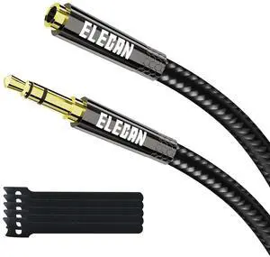3.5mm Auxiliary Audio Extension Cable Gold Plated Copper Shell Heavy Duty 1/8 inch TRS Male to Female Stereo Audio Adapter for Home/Car Speakers Smartphones Headphones Tablets 9 Feet