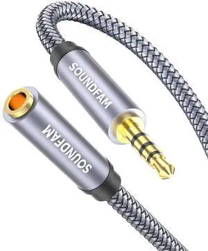 Headphone Extension Cable 3Feet/1M TRRS 3.5mm Audio Cable Male to Female AUX Extension Cord Nylon Braided Support Mic Function for Smartphone Tablets -Grey
