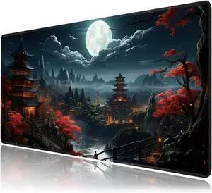 Japanese Full Moon Large Mouse Pad Gaming Keyboard Desk Pad Extended Mouse Mat Non-Slip Rubber Base with Stitched Edges for Office Game Home XXL 35.4x15.7