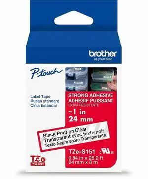 Brother Genuine P-touch TZeS151 BK on CLR Label Tape Strong Adhesive Lam. 24mmX8m