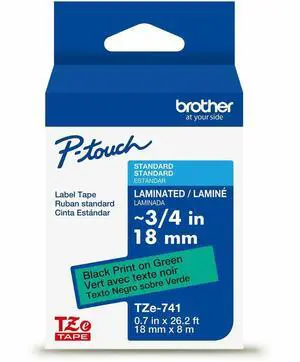 Brother Genuine P-touch TZe741 BK on GRN Label Tape Laminated 18mmX8m