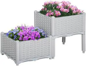 2 Piece Raised Garden Bed with Legs, Self-Watering Planter Box Raised Bed to Grow Flowers, Herbs & Vegetables, Gray