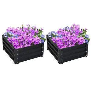 2 Piece Galvanized Raised Garden Bed, 2' x 2' x 1' Metal Planter Box, for Growing Vegetables, Flowers, Herbs, Succulents, Gray