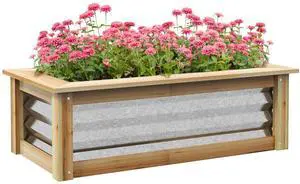Raised Garden Bed Kit, Outdoor Planter Box, Galvanized Metal Reinforced with Wood, Stock Tank for Growing Flowers, Herbs and Vegetables