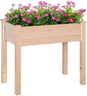 Raised Garden Bed with Legs, 34" x 18" x 30", Elevated Wooden Planter Box, Self-Draining with Bed Liner for Vegetables, Herbs, and Flowers Backyard, Patio, Balcony Use, Natural
