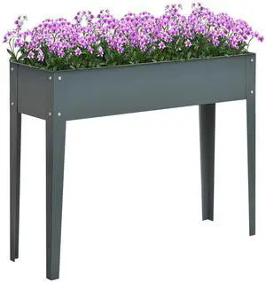 Metal Raised Garden Bed, Elevated Planter Box with Legs and Drain Holes, Dark Gray