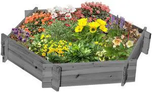 Wooden Raised Garden Bed, Hexagon Screwless Planters for Outdoor Plants, Vegetables, Flowers, Herbs, 39" x 36" x 6", Gray