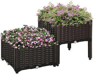 6 Piece Raised Garden Bed Kit, Elevated Self-Watering Planter Boxes with Drainage Holes for Outdoor Flowers, Vegetables, and Herbs