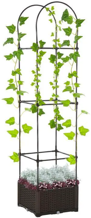 Raised Garden Bed with Trellis for Climbing Plants, Planter Box with Drainage Gap, Freestanding Trellis Planter for Outdoor, Patio, Deck, 28.25" x 15" x 59", Gray