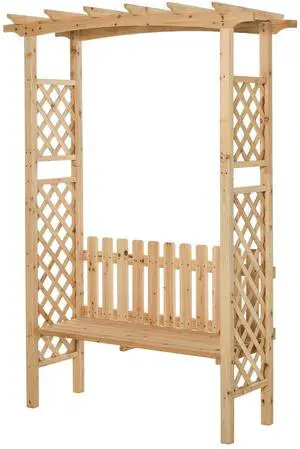 Wooden Garden Arbor for Climbing Plants with Garden Bench, Garden Arch to Grow Grapes & Vines, Patio Decor & 2-Person Outdoor Wood Decorative Seating, Natural