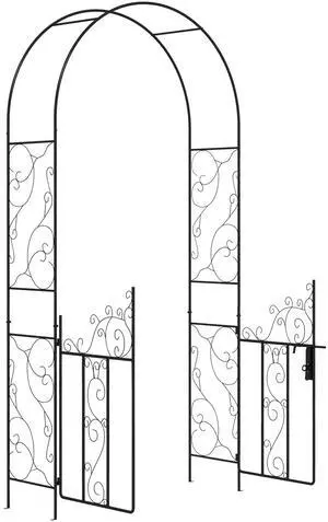 7' Garden Arch Arbor, Metal Arch Trellis with Gate, Garden Archway for Climbing Vines, Wedding Ceremony Decoration, Black