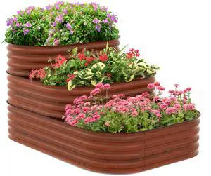 3-Tier Galvanized Steel Raised Garden Bed Kit, 62.25" x 43" x 32.25", 3 Combining Planter Boxes with Rubber Strip Edging, Open Bottom for Backyard, Garden, Patio, Brown