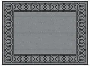 Reversible Outdoor Rug, 9' x 12' Waterproof Plastic Straw Floor Mat, Portable RV Camping Carpet, Large Floor Mat for Backyard, Deck, Picnic, Beach, Black & Gray Border