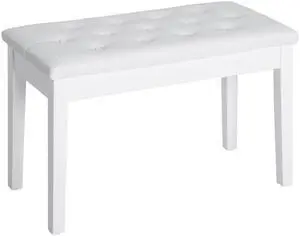Piano Bench, Duet Piano Chair with Faux Leather Padded Cushion and Wooden Frame, Button Tufted Keyboard Bench, White