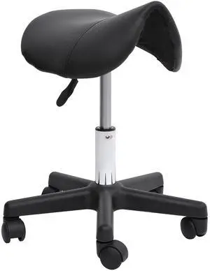 Rolling Saddle Stool, Swivel Salon Chair, Ergonomic Faux Leather Stool, Adjustable Height with Wheels for Spa, Salon, Massage, Office, Black