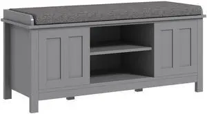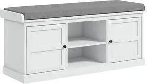 Shoe Bench with Cushion, Storage Bench for Entryway with Padded Seat, 2 Cabinets and Adjustable Shelf for Hallway, Living Room, Bedroom, White