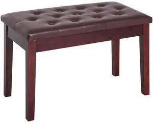 Piano Bench, Duet Piano Chair with Faux Leather Padded Cushion and Wooden Frame, Button Tufted Keyboard Bench, Brown