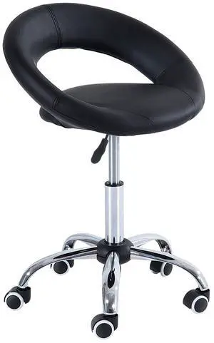 Crescent Rolling Salon Stool with Adjustable Height, Breathable Open Back, Foam Cushion Seat, and 5 Caster Wheels, Black