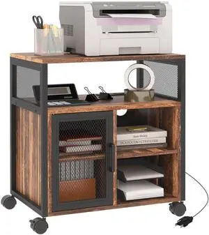 Vinsetto Mobile Printer Stand with Socket & USB Ports, Rustic Brown