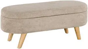 Storage Ottoman Bench, 43.3" Teddy Fleece Upholstered End of Bed Bench with Wood Legs and Padded Seat, Oval Modern Entryway Bench, Beige