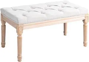 32" End of Bed Bench, Upholstered Bedroom Bench, Cream White