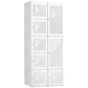 Portable Wardrobe Closet, Folding Bedroom Armoire, Clothes Storage Organizer with 11 Cube Compartments, Hanging Rod, Magnet Doors, White