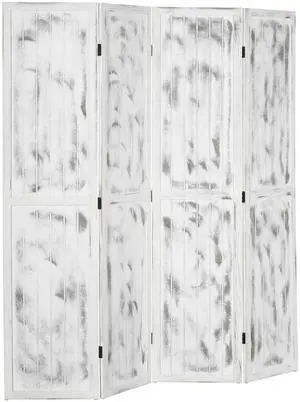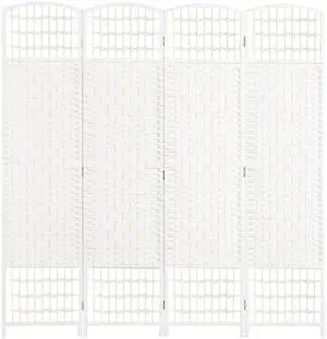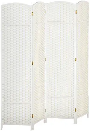 4 Panel Room Divider, Folding Privacy Screen, 5.6' Room Separator, Wave Fiber Freestanding Partition Wall Divider for Rooms, Home, Office, White