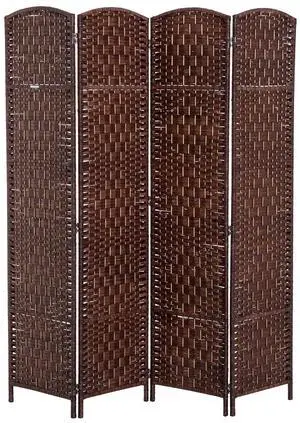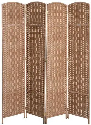 6' Tall Wicker Weave 4 Panel Room Divider Privacy Screen - Brown