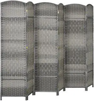 6 Panel Room Divider, 6' Tall Folding Privacy Screen, Hand-Woven Freestanding Wall Partition for Home Office, Bedroom, Mixed Gray