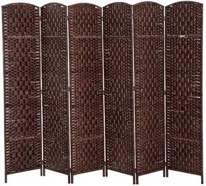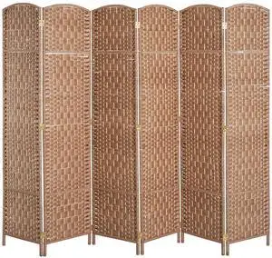 6' Tall Wicker Weave 6 Panel Room Divider Privacy Screen - Brown