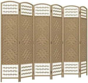 6 Panel Room Divider, Folding Privacy Screen, 5.6' Room Separator, Wave Fiber Freestanding Partition Wall Divider, Natural