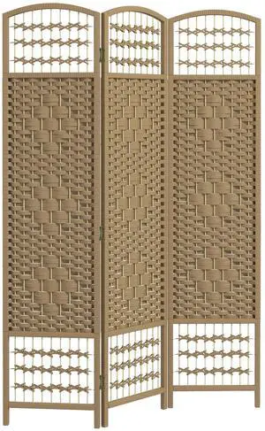 6' Tall Wicker Weave 3 Panel Room Divider Privacy Screen - Natural