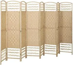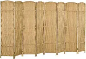 8 Panel Room Divider, Folding Privacy Screen, 5.6' Room Separator, Wave Fiber Freestanding Partition Wall Divider, Natural