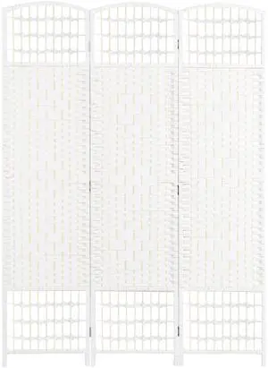 3 Panel Room Divider, Folding Privacy Screen, 5.6' Room Separator, Wave Fiber Freestanding Partition Wall Divider for Rooms, Home, Office, White