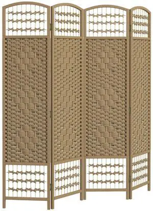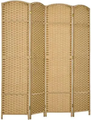 6' Tall Wicker Weave 4 Panel Room Divider Privacy Screen - Natural