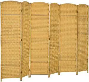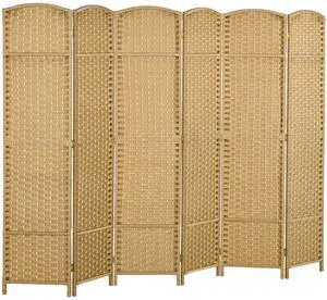 6' Tall Wicker Weave 6 Panel Room Divider Privacy Screen - Natural