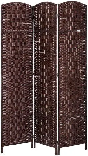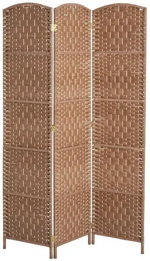 6' Tall Wicker Weave 3 Panel Room Divider Privacy Screen - Brown