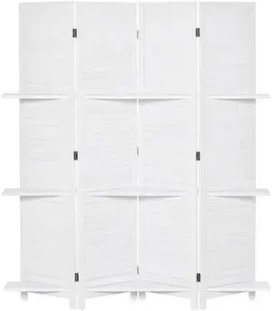 4 Panel 67" Tall Wood Privacy Screen Room Divider with 3 Display Shelves, and Folding Storage for Bedroom or Home Office, White