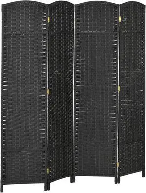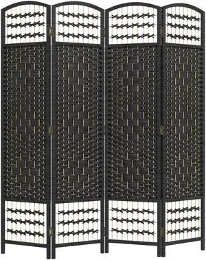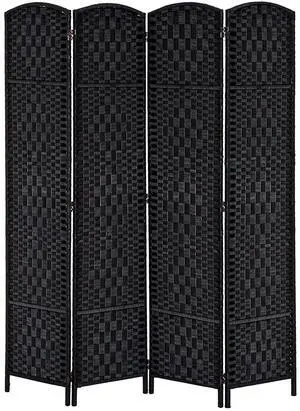 6' Tall Wicker Weave 4 Panel Room Divider Privacy Screen - Black