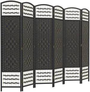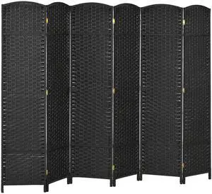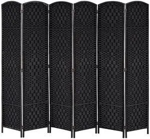 6' Tall Wicker Weave 6 Panel Room Divider Privacy Screen - Black