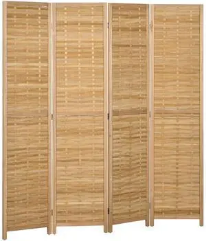 4 Panel Room Divider, 5.5' Tall Bamboo Portable Folding Privacy Screens, Hand-Woven Double Side Partition Wall Dividers for Home Office, Natural