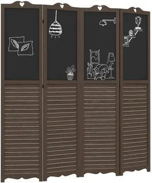 4-Panel Folding Room Divider with Blackboard, 5.5 Ft Tall Freestanding Privacy Screen Panels for Bedroom or Office, Walnut Brown
