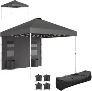 10x 10 ft party tent Pop Up Canopy Tent with 2 Half Sidewalls with Wheeled Carry Bag, Dark Gray