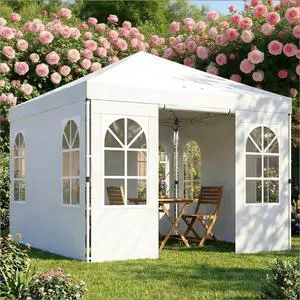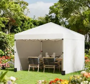 10x 10 ft party tent w/ Sidewall with Height Adjustable Instant Sun Shelter w/ Storage Pockets, White