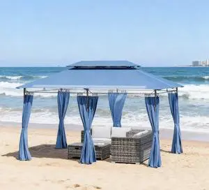Outdoor Gazebo with Curtains,Double Roof Patio Gazebo,for Garden, Lawn, Backyard and Deck