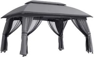 9.6' x 11.6' Patio Gazebo, Outdoor Canopy Shelter with 2-Tier Roof and Netting, Steel Frame for Garden, Lawn, Backyard, and Deck, Gray