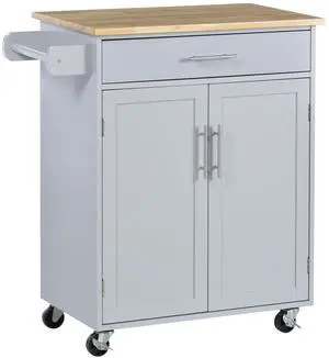 Kitchen Island Cart Rolling Trolley Cart with Drawer, Storage Cabinet & Towel Rack, Gray