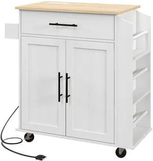Kitchen Island Cart, Rolling Kitchen Island with Storage, Solid Wood Top, Drawer, for Dining Room, White