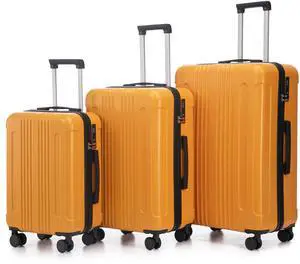 20"/24"/28" 3 pcs/set in ABS Spinner Wheel Luggage, Carry on Suitcase, Matching Color, TSA Combination Lock (Black+Orange)